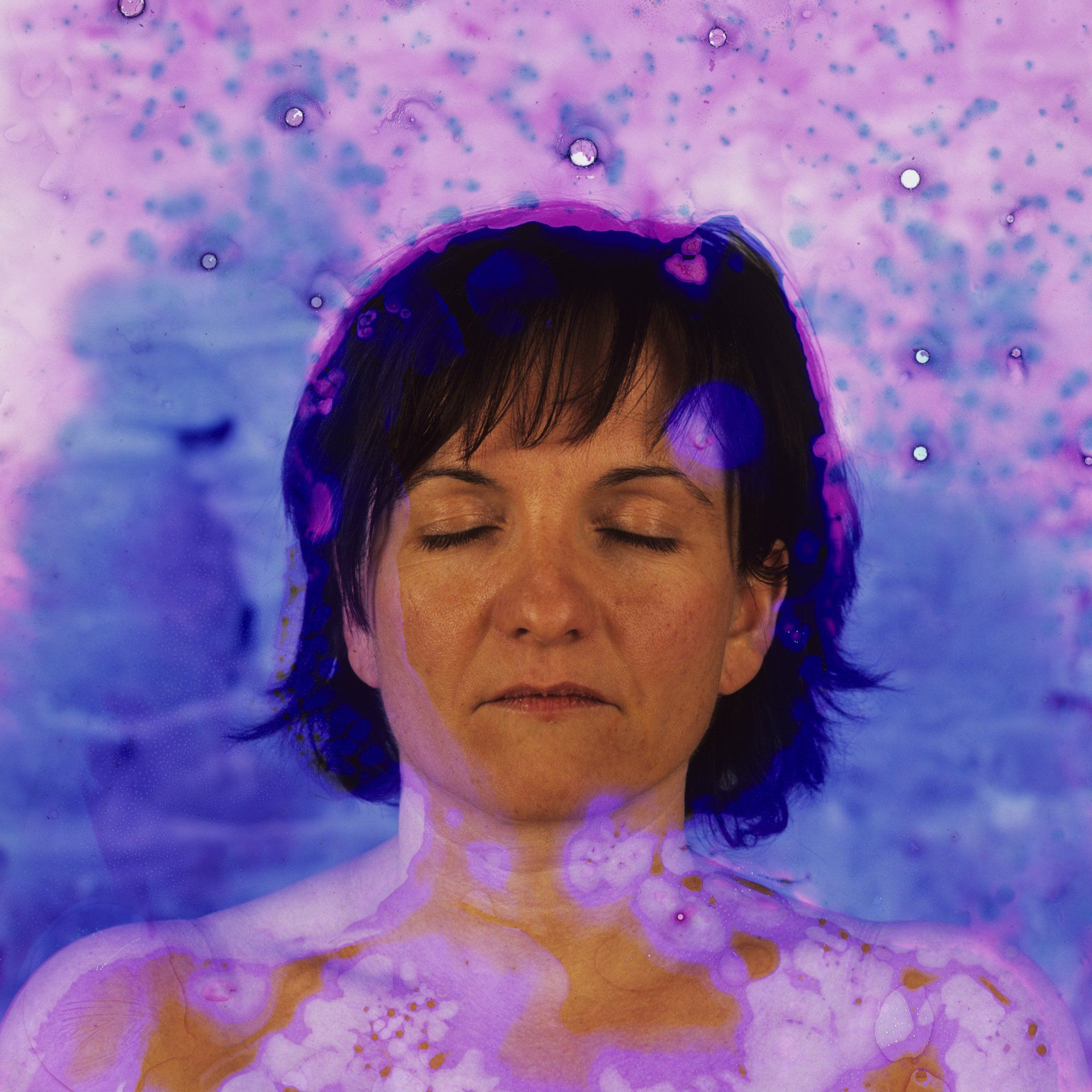 Le fond, un mur de pierre, représente l’enfermement de l’égo, les yeux clos tournent le regard vers l’intérieur, les épaules nues symbolisent l’abandon de l’apparence sociale.
